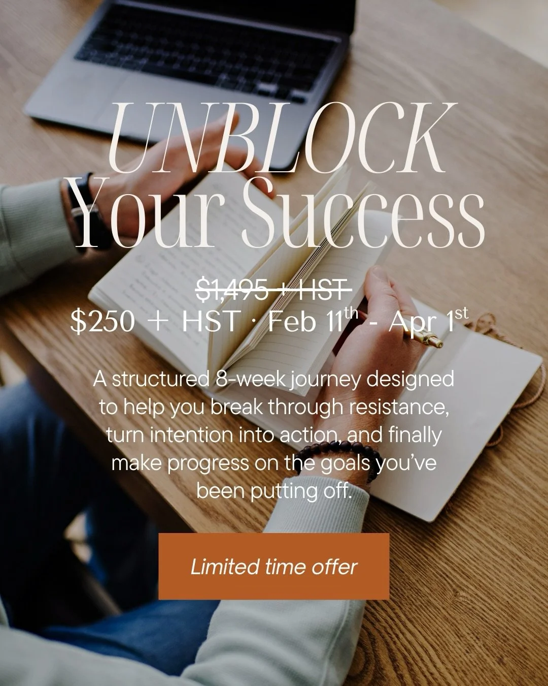 The program is $1495 CAD plus HST and $995 CAD plus HST for returning UNBLOCKers.